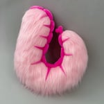 Pastel pink fur husky shape tail with plush dark pink bone detail, elastic attachment, firmly stuffed for wagability.